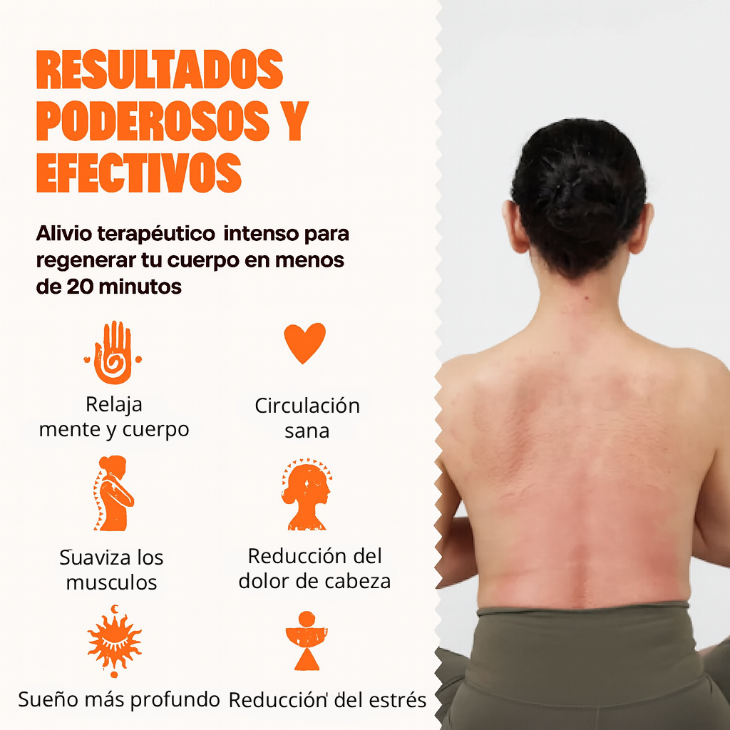 Sus miles de micropuntos estimulan zonas clave, ayudando a aliviar molestias en la espalda, el cuello y los músculos cargados.